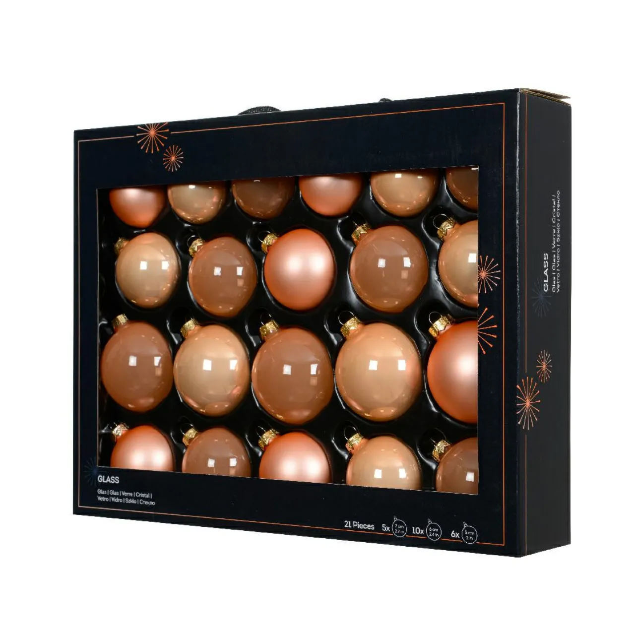 Informations complémentaires : lot de 21 boules. Les boules sont munies d’une suspension de couleur or.