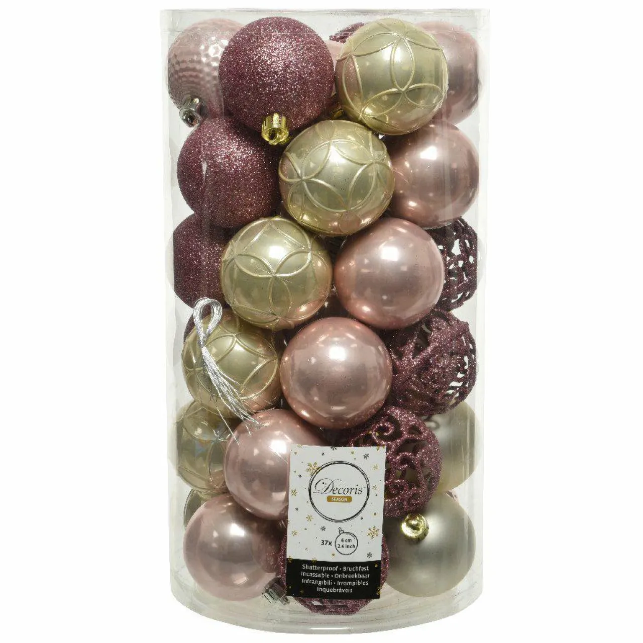 Composition du lot : 37 boules (D60 mm) en tout genre : mates, pailletées, brillantes …