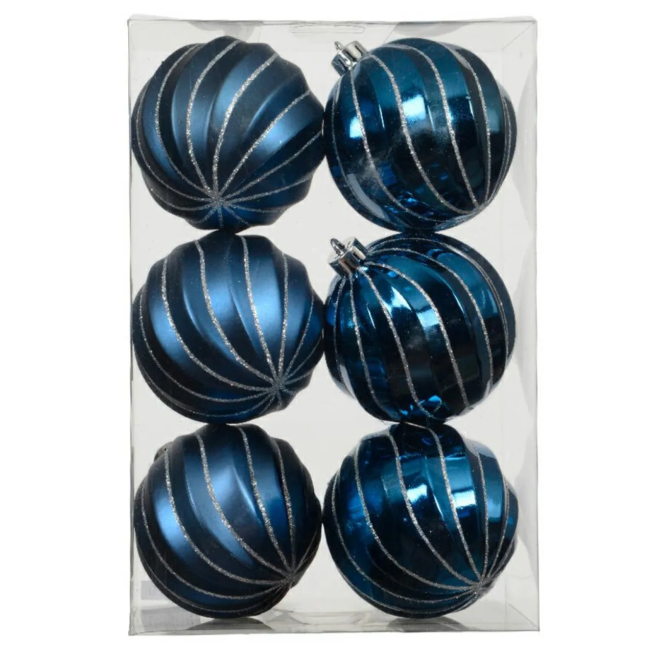 Informations complémentaires : vendu en lot de 6 boules. Les boules sont munies d’une suspension comprise de couleur argent.