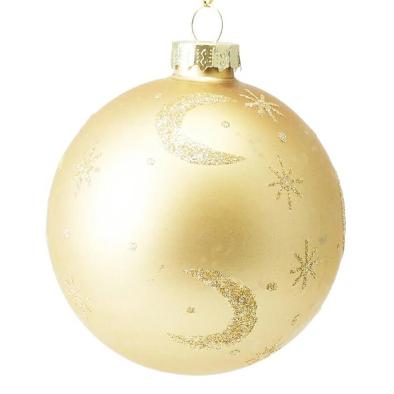 Ces boules de Noël en verre, ornées de motifs de lune et d’étoiles, apporteront une touche de féerie à votre sapin. Leur finition pailletée dorée et leur palette de couleurs bleu et or mat créent une ambiance festive et élégante.