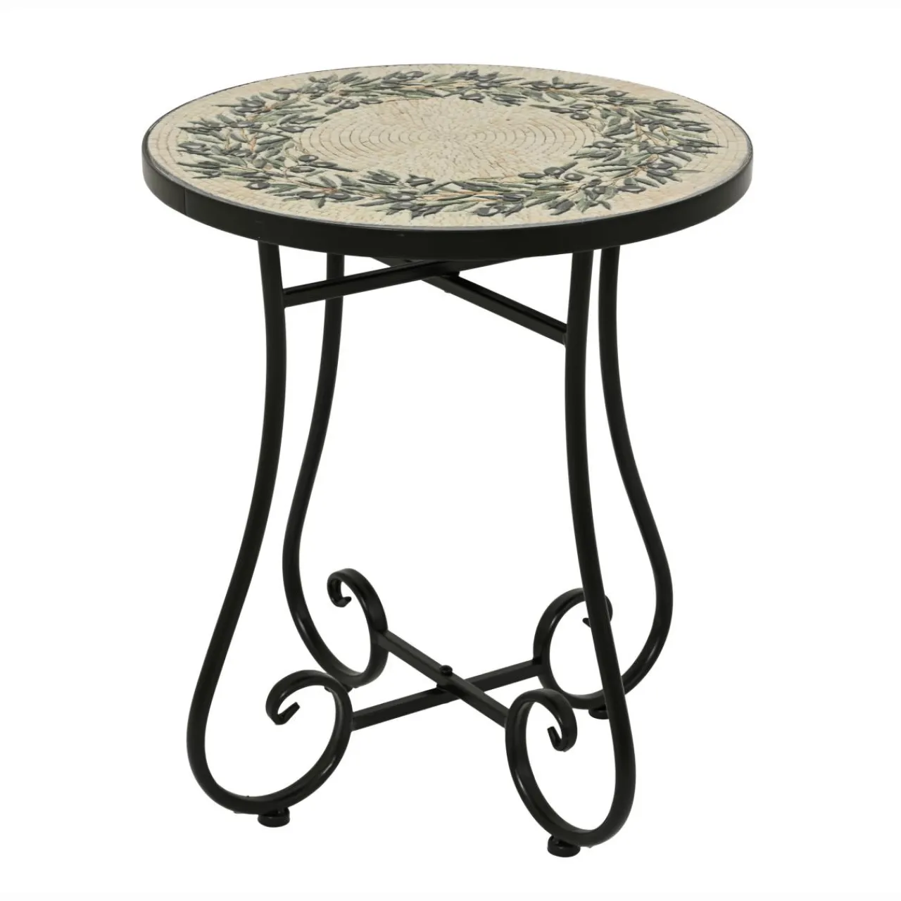 Cette élégante table d’appoint Athènes, avec son plateau en mosaïque orné de feuilles d’olivier, est idéale pour embellir votre jardin. Elle sublimera votre espace en un clin d’œil.
