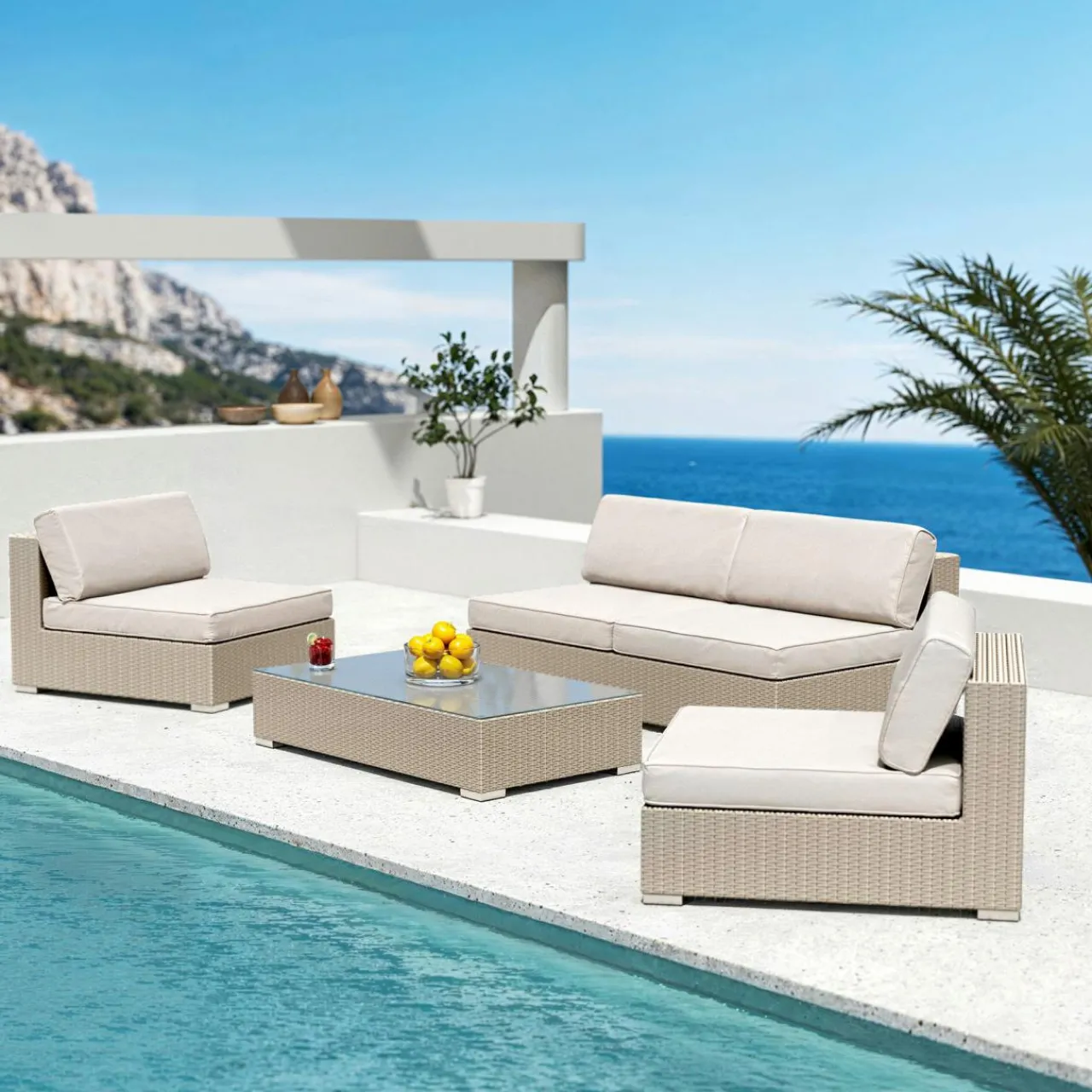Pensée pour la détente et le confort, la gamme de jardin Palma séduit par son design épuré qui associe la chaleur d’un matériau classique à une silhouette basse et modulable. La table basse Palma en résine tressée complète harmonieusement votre ensemble avec élégance.