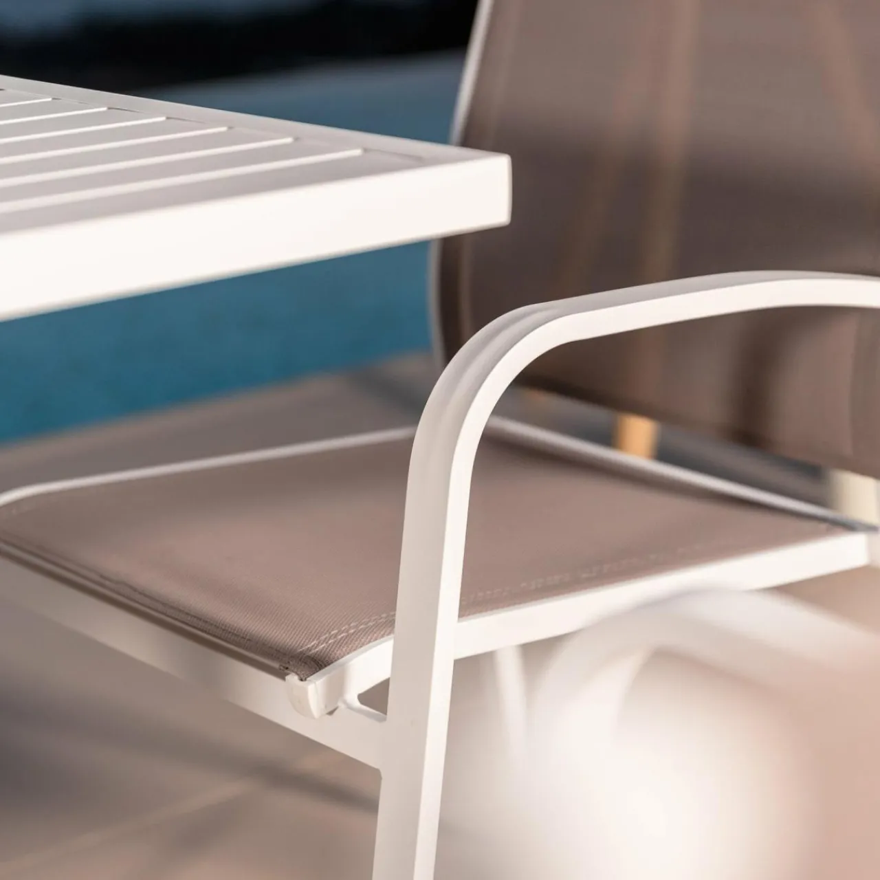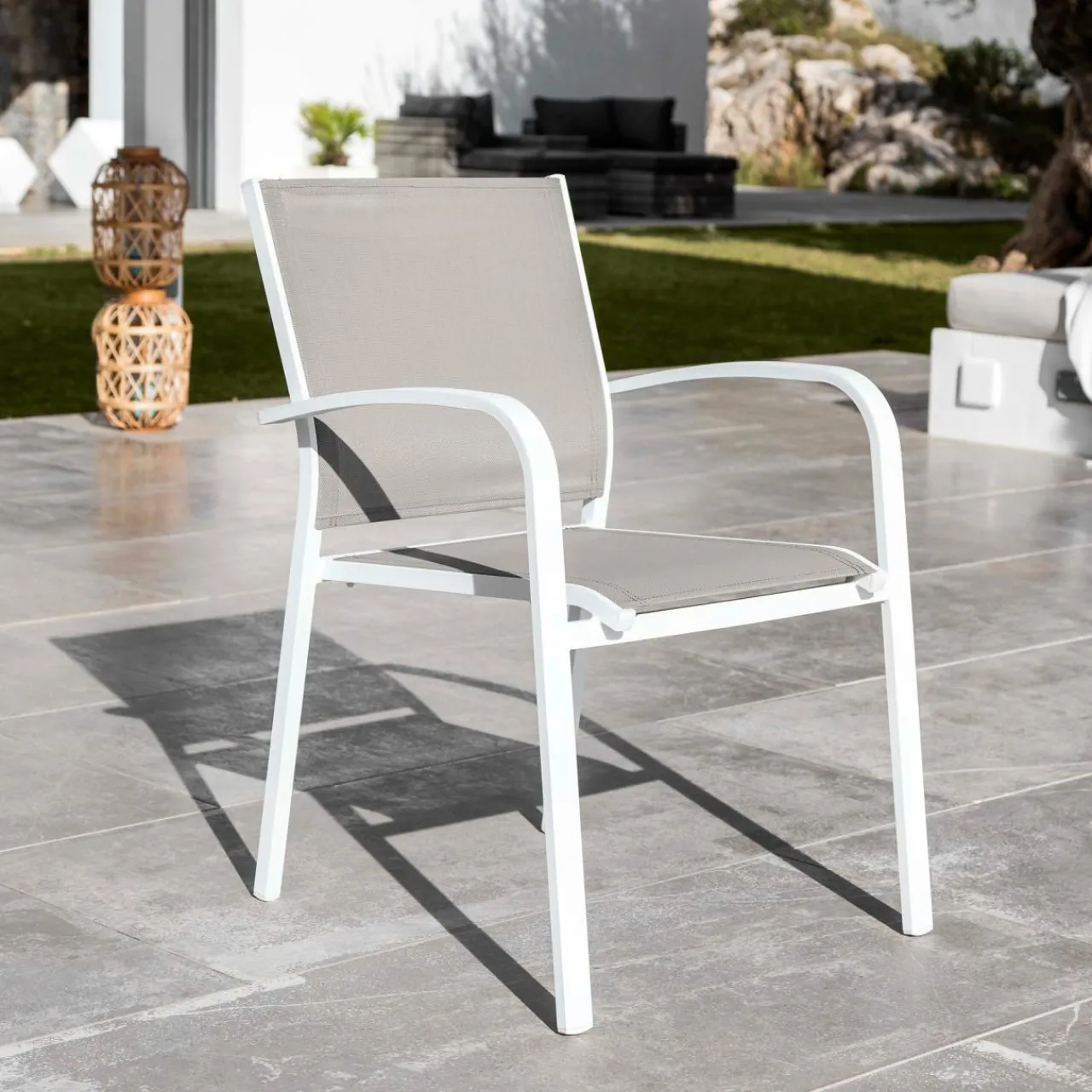 Astucieux et pratique, le fauteuil Murano est empilable pour un rangement simplifié. Il complète harmonieusement l’ensemble salon de jardin Murano, une gamme pensée pour conjuguer fonctionnalité et convivialité. Grâce à ses finitions élégantes en aluminium, il apporte une note moderne et raffinée à votre extérieur.