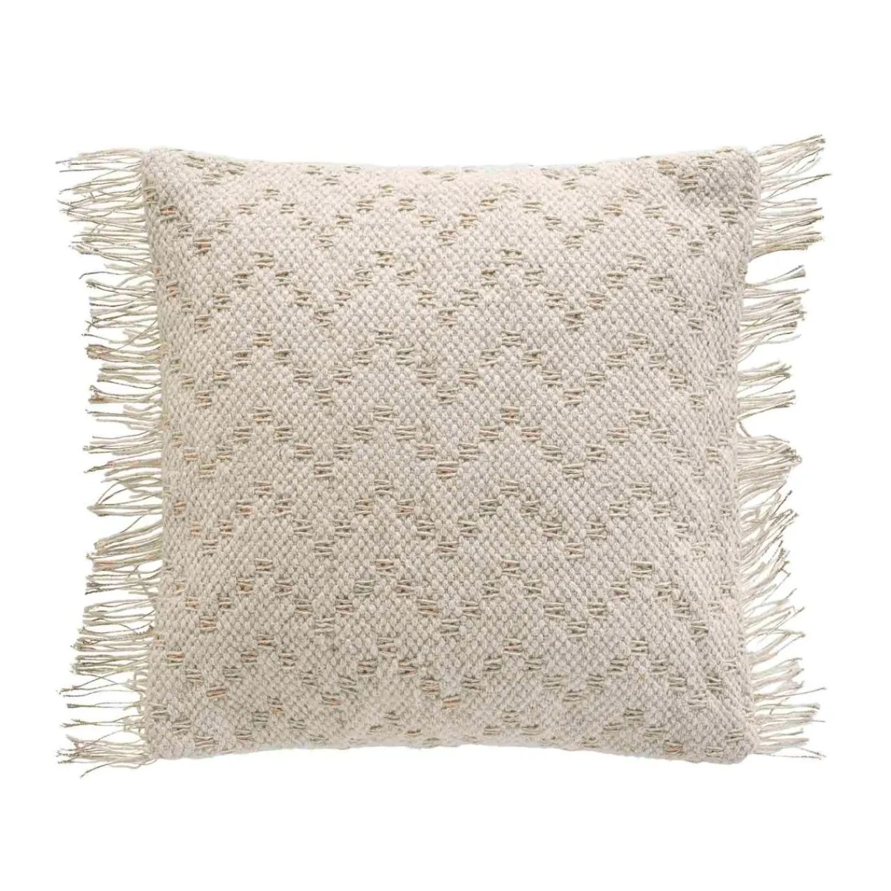 Imprimé : housse de coussin effet tissage au recto et unie au verso.