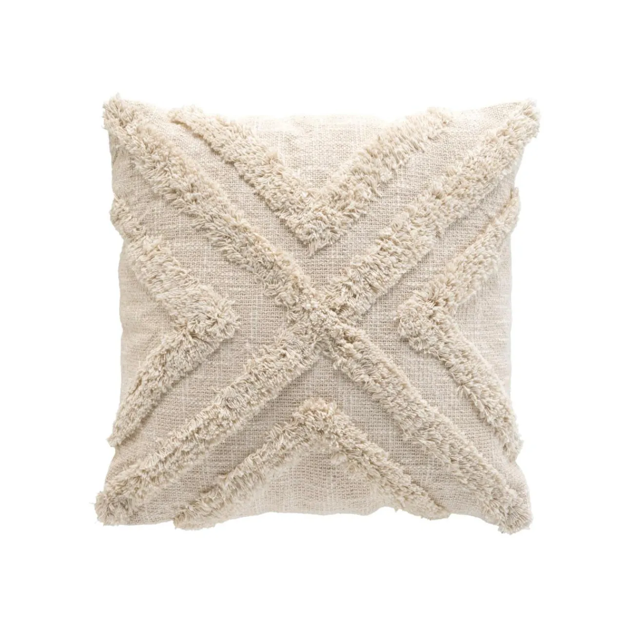 Imprimé : housse de coussin motif tufté au recto et unie au verso.