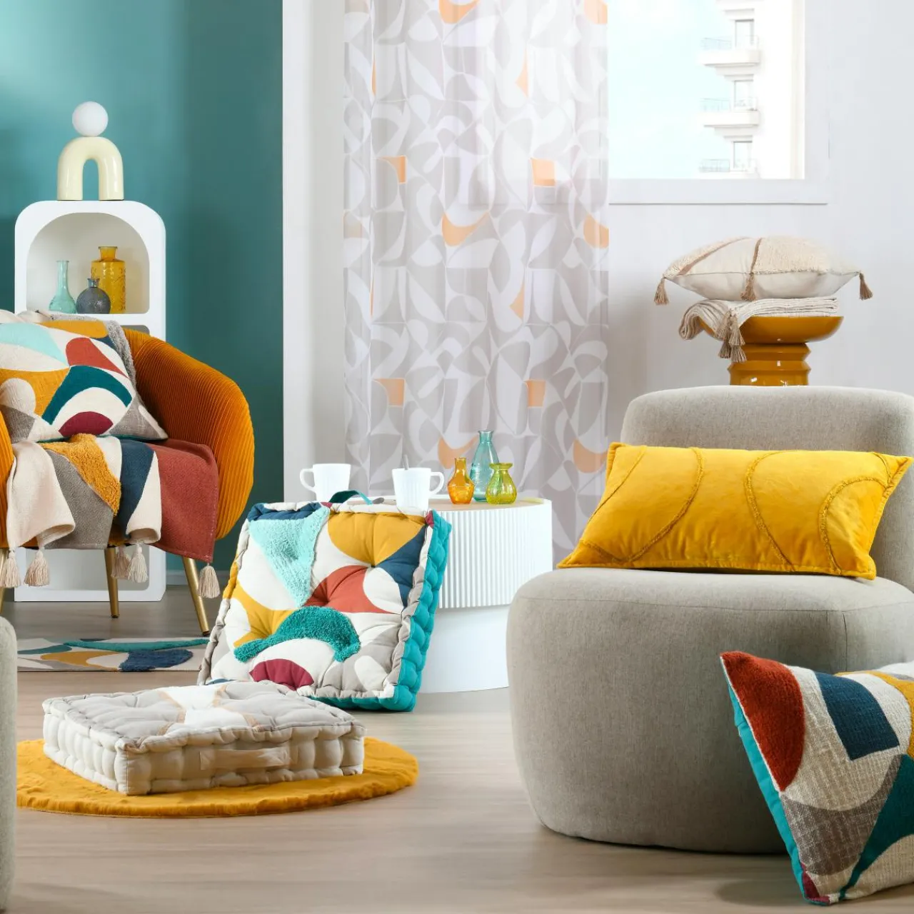 Coussin Et Housse|EMINZA Coussin rectangulaire coton (30 x 50 cm) Pixel Jaune moutarde