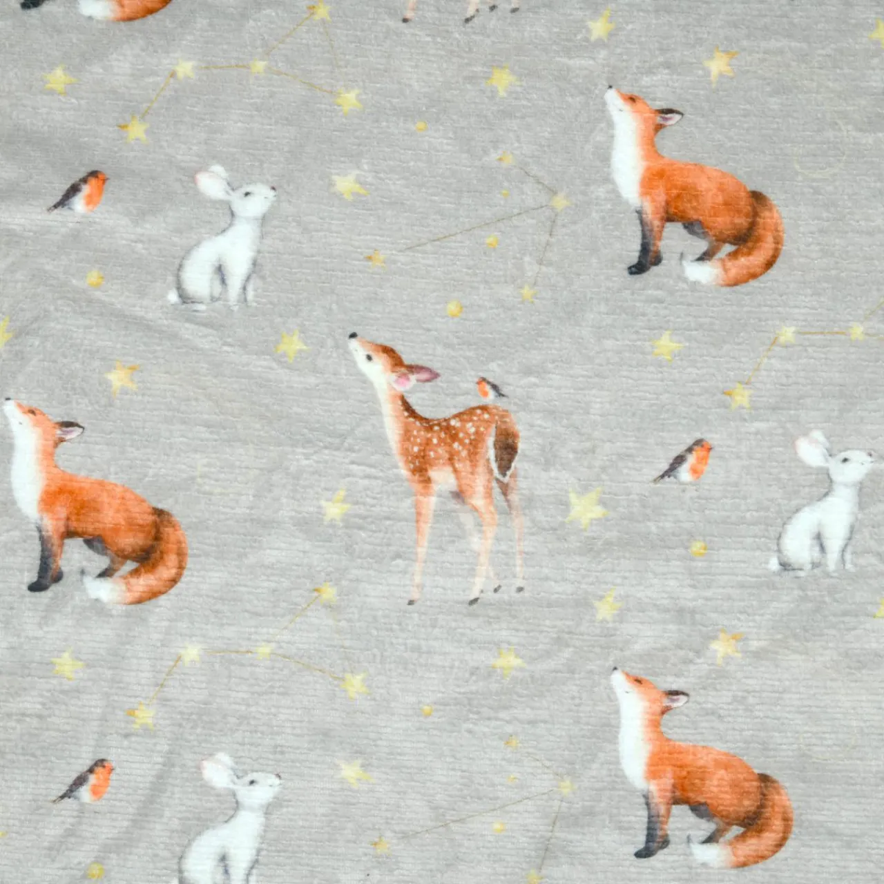 Imprimé : motifs renards et lapins.