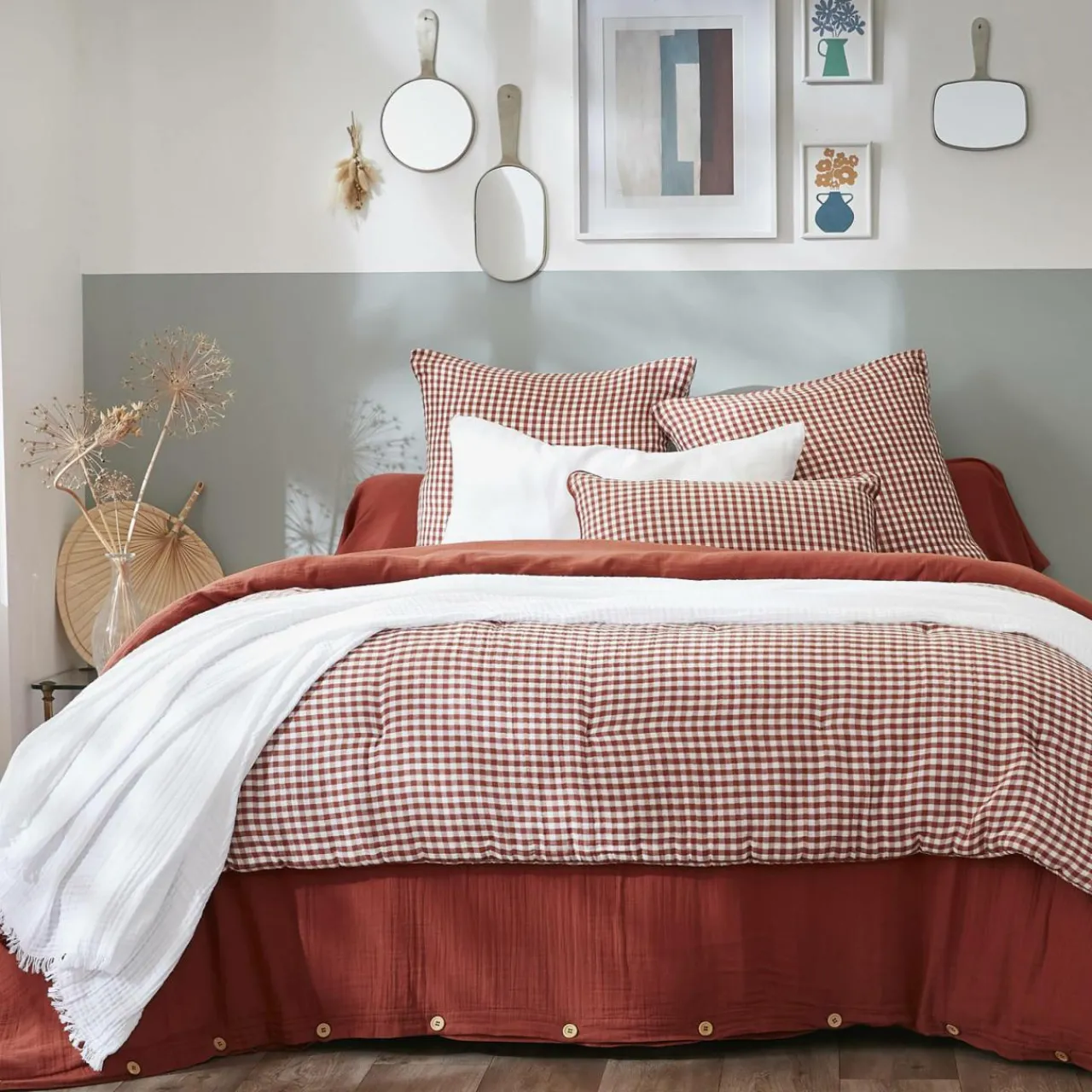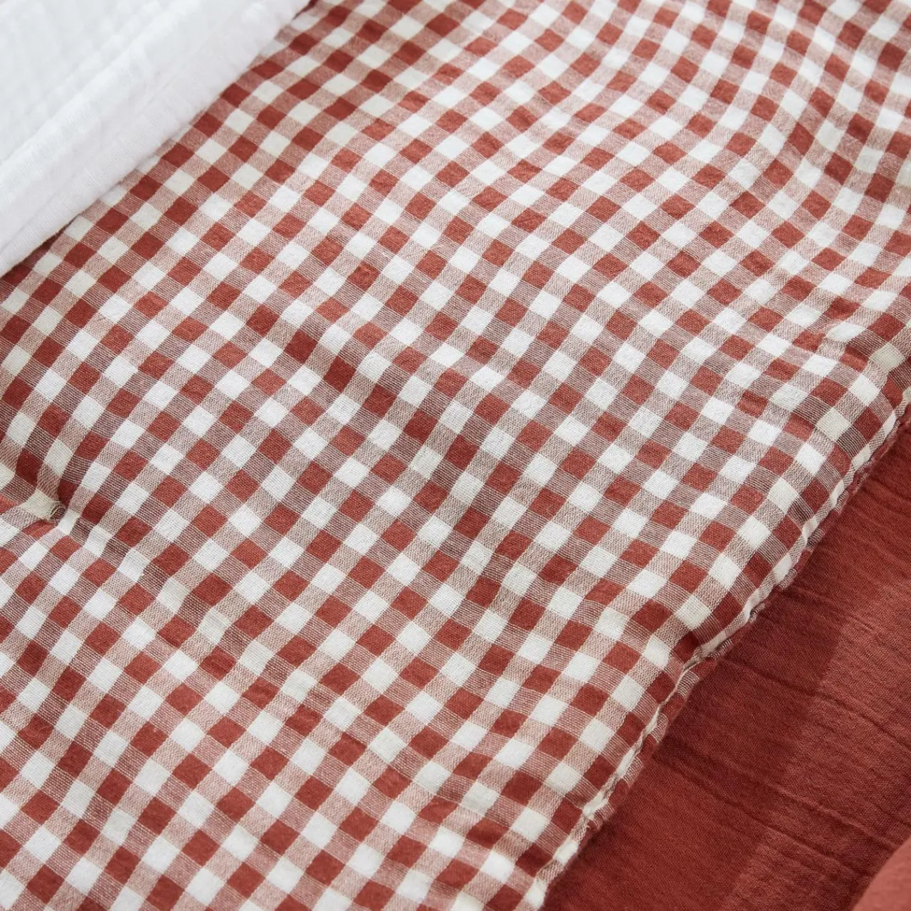Son motif vichy, associé à la gaze de coton, sera parfait pour une touche de douceur en plus sur le lit.
