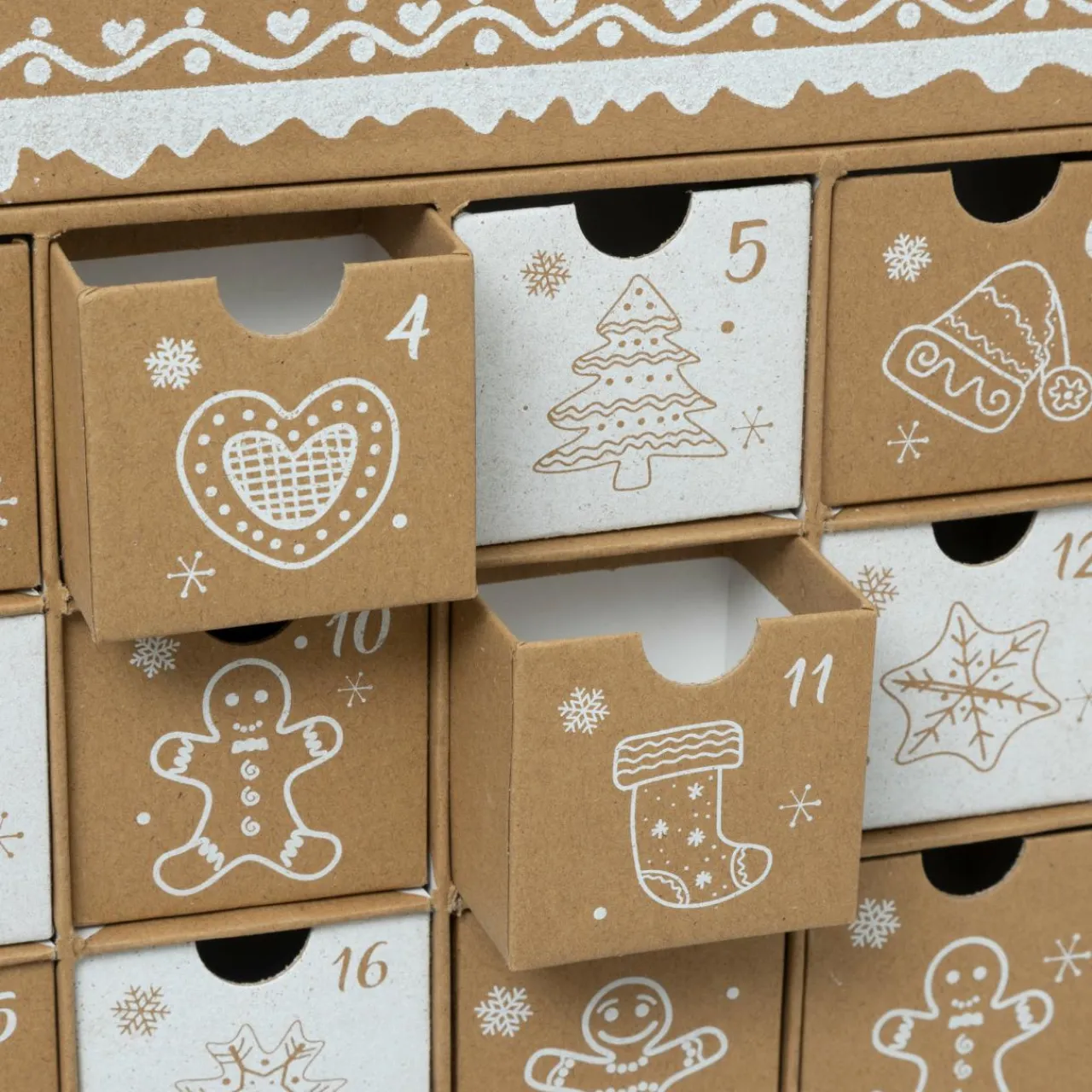 Doté de cases à remplir, notre calendrier de l’avent Maison Pain d’épices vous permet de personnaliser chaque jour avec des surprises uniques. Un ajout charmant et interactif à votre décoration de Noël, parfait pour ravir petits et grands.