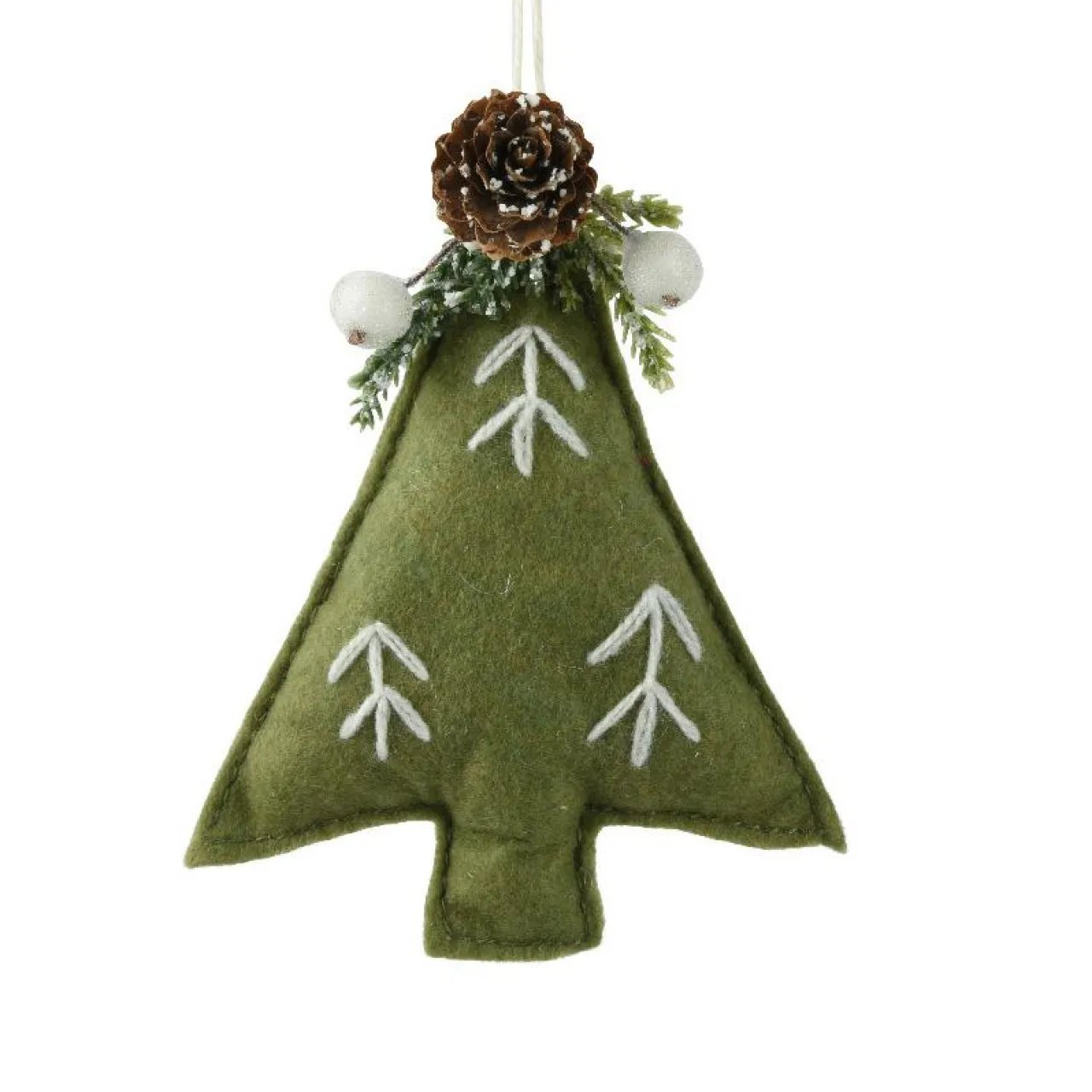 Matière : feutrine, pommes de pin, baies, branches de sapin.