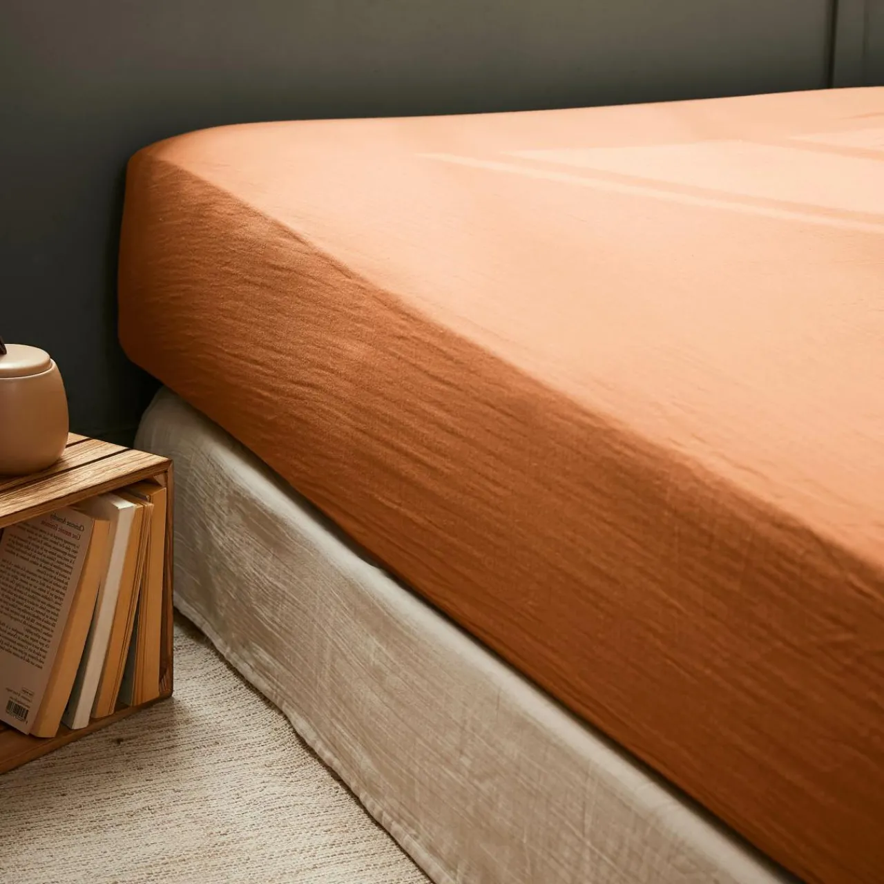 Drap Housse|EMINZA Drap housse gaze de coton (160 x 200 cm) Gaïa Abricot