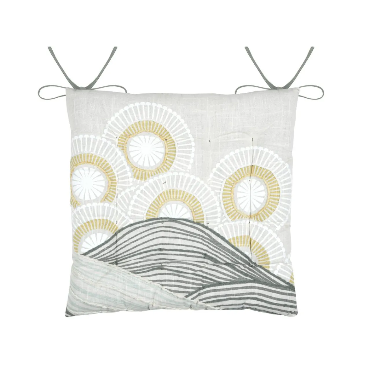 Finition : attache par nouettes au dos de la chaise. 16 points. Recto à motif et verso uni.