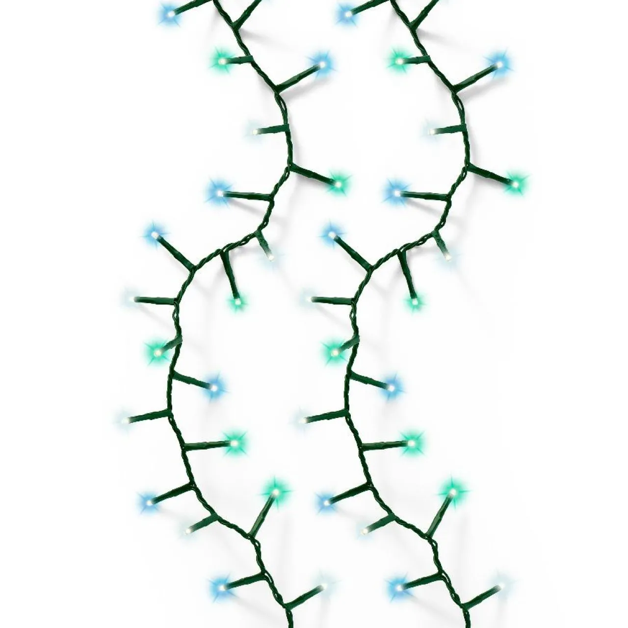 Illuminez votre maison ou votre jardin avec cette magnifique guirlande lumineuse Luxe Tricolore. Avec ses 750 LED aux couleurs chaleureuses de vert, bleu et blanc, elle apportera une touche festive à votre décoration, que ce soit pour Noël ou pour toute autre occasion spéciale.
