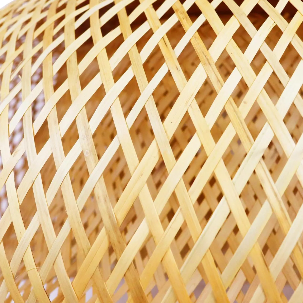 Chaque suspension est tressée à la main, ce qui peut entraîner de légères irrégularités et des variations de teinte dues à la couleur naturelle du bambou.