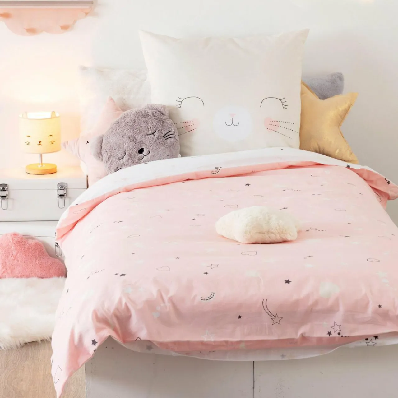Votre petite fille va adorer se blottir dans cette adorable housse de couette en coton.