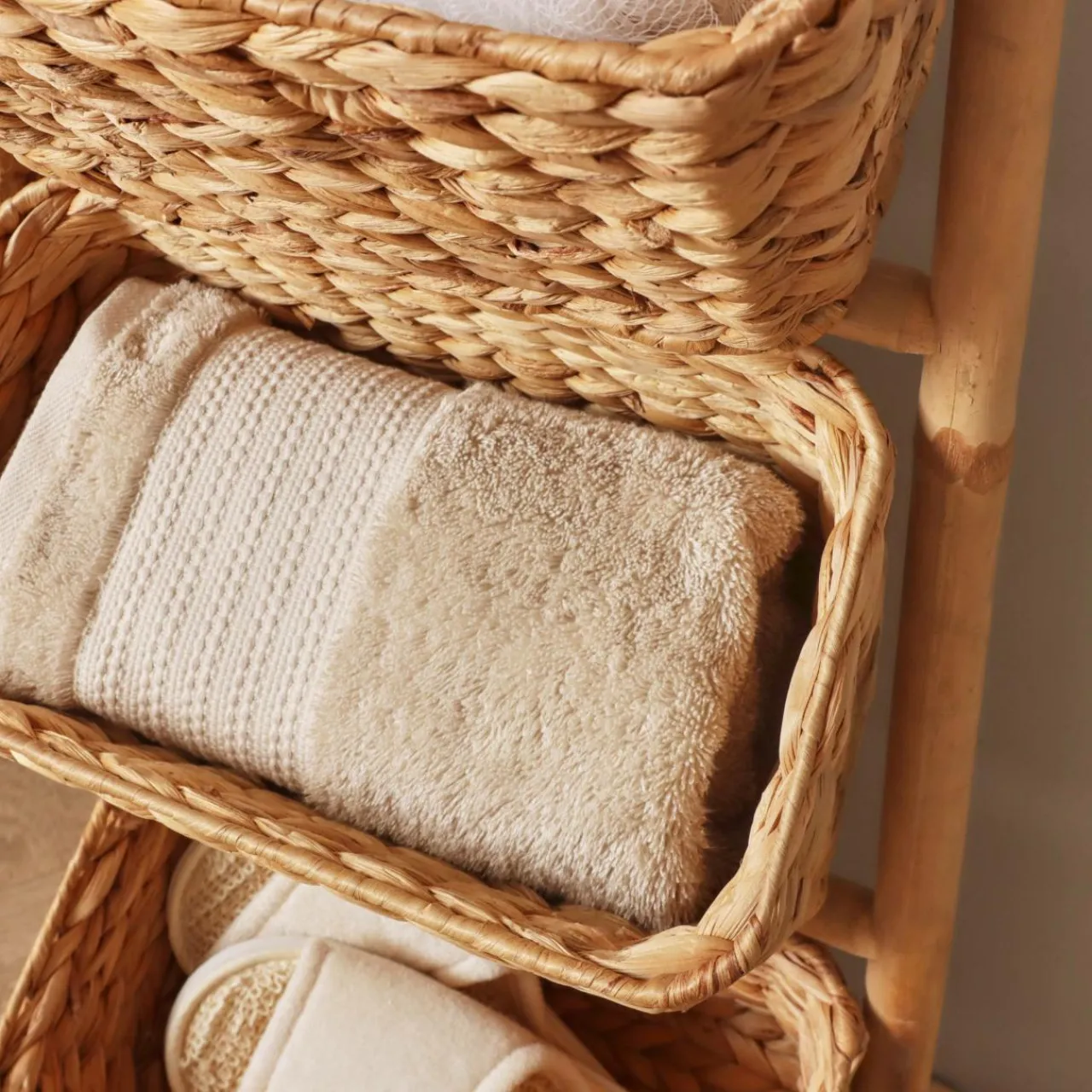 Laissez-vous séduire par le design naturel et élégant du meuble Hanoï, et offrez à votre salle de bain une ambiance zen et apaisante. Dotée de trois paniers tressés en jacinthe d’eau, cette étagère allie parfaitement fonctionnalité et esthétique. Elle est idéale pour organiser et ranger vos divers accessoires.