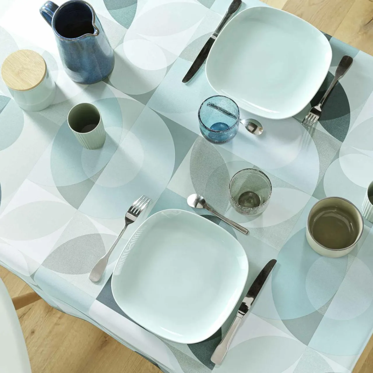 Imprimé : nappe à motif graphique.