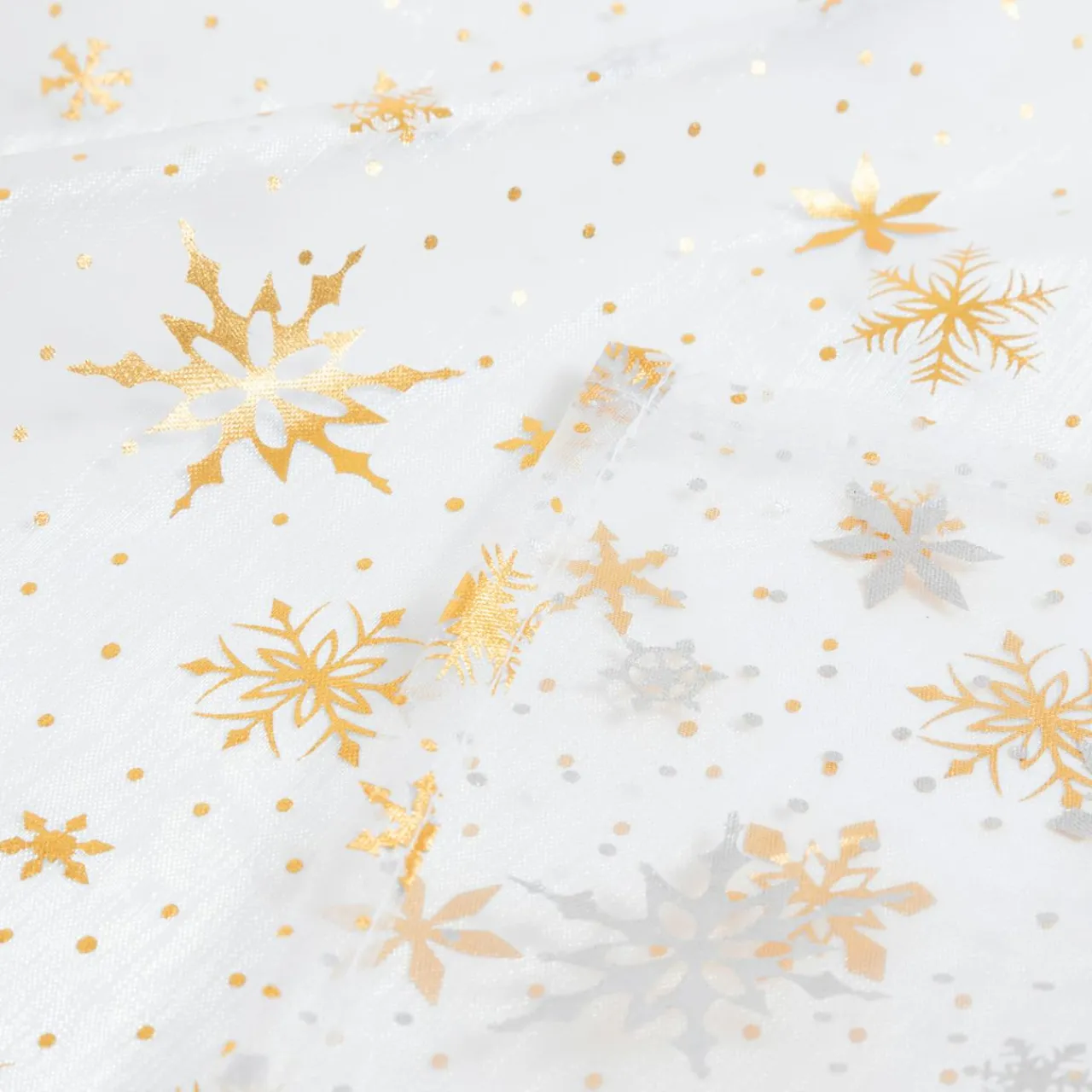 Sublimez votre table de fête avec cette nappe de Noël rectangulaire. Son motif flocon de neige doré sur fond blanc apportera une touche d’élégance et de magie à votre décoration de Noël.
