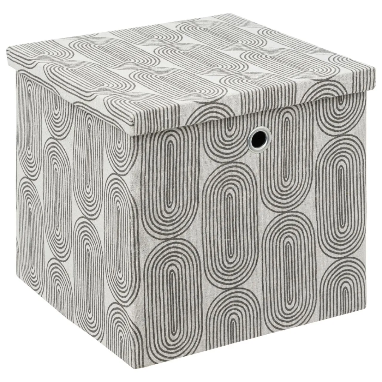 Imprimé : panier à motif graphique et à couvercle.