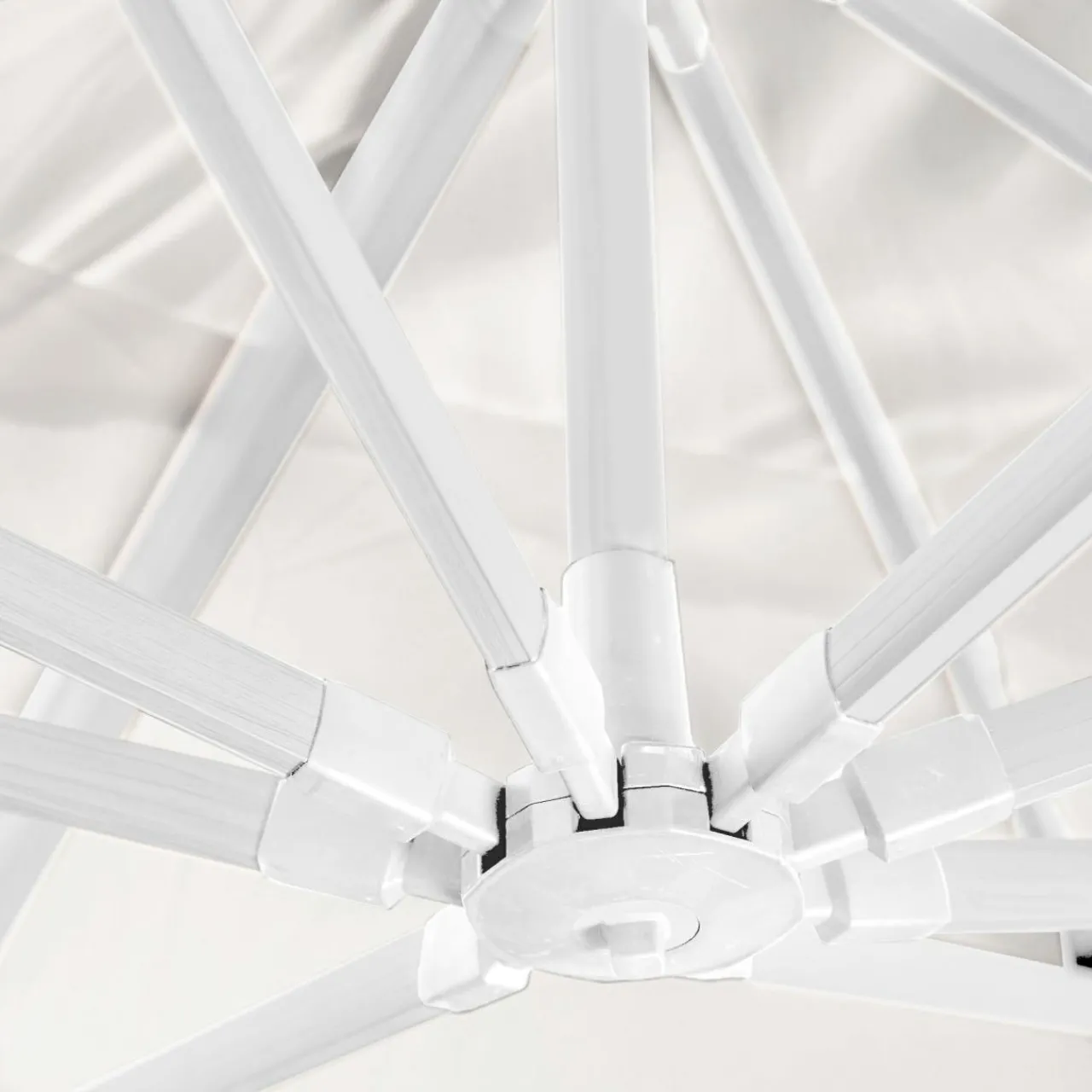 Sa toile est amovible et lavable. Il est vivement conseillé de détacher sa toile durant les fortes intempéries, et de protéger votre parasol grâce à une housse de protection.
