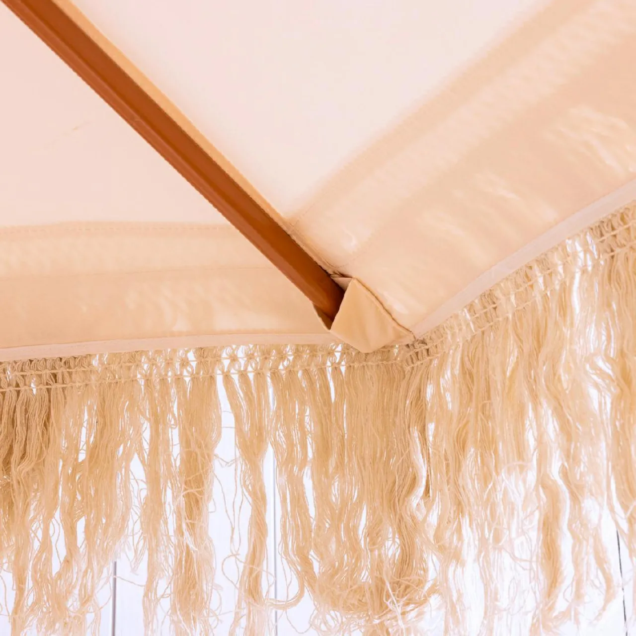 Le parasol possède de jolies franges en coton tout le long de sa bordure.
