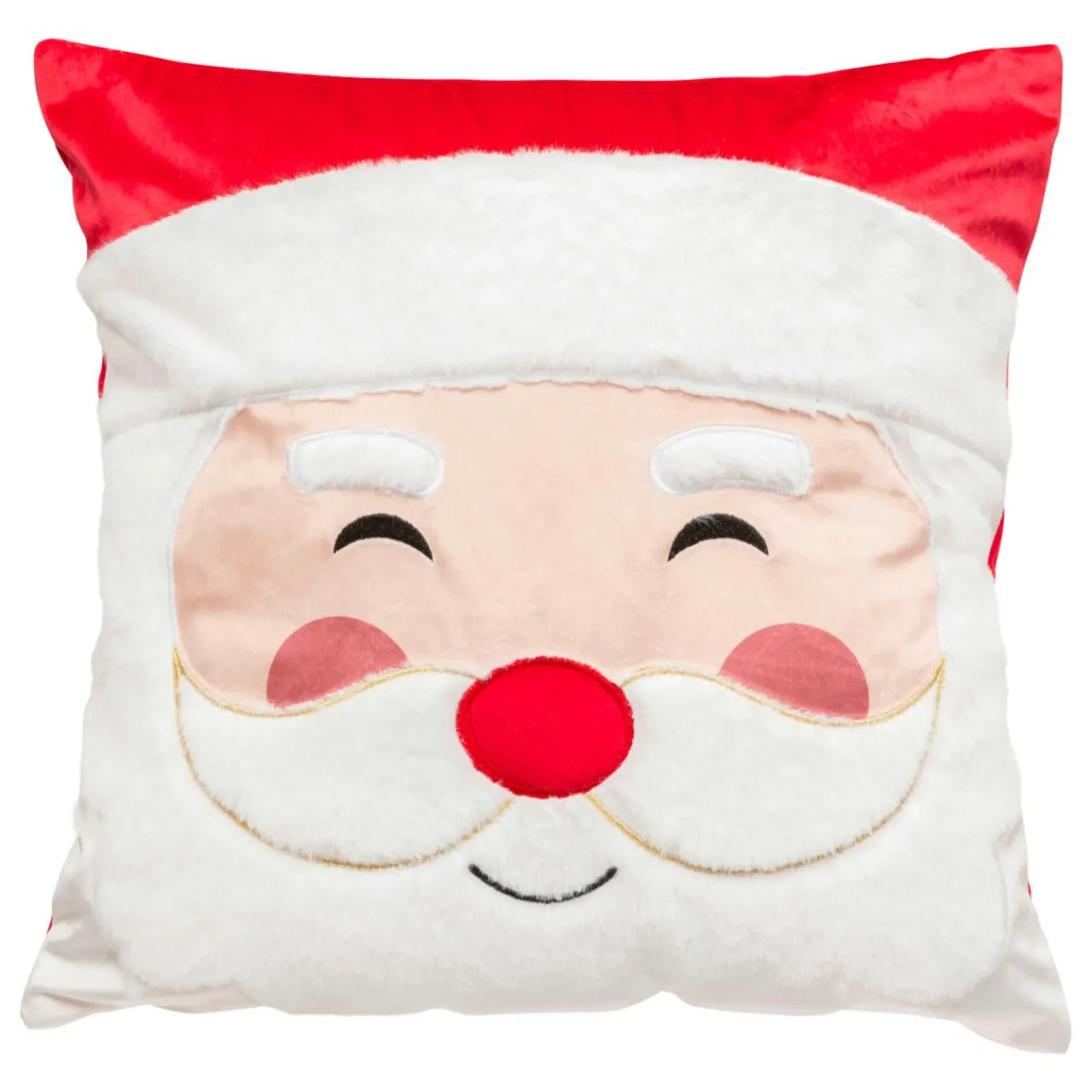 Imprimé : coussin à motif Père Noël au recto et uni au verso.