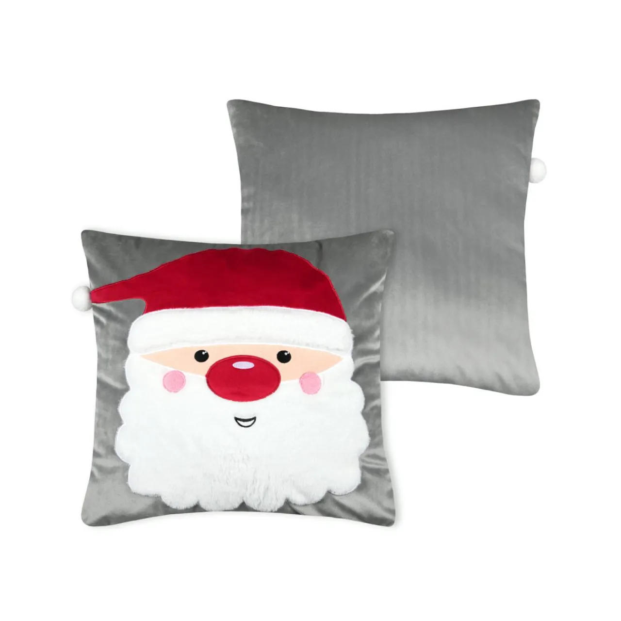 Imprimé : coussin à motif brodé tête de Père Noël.