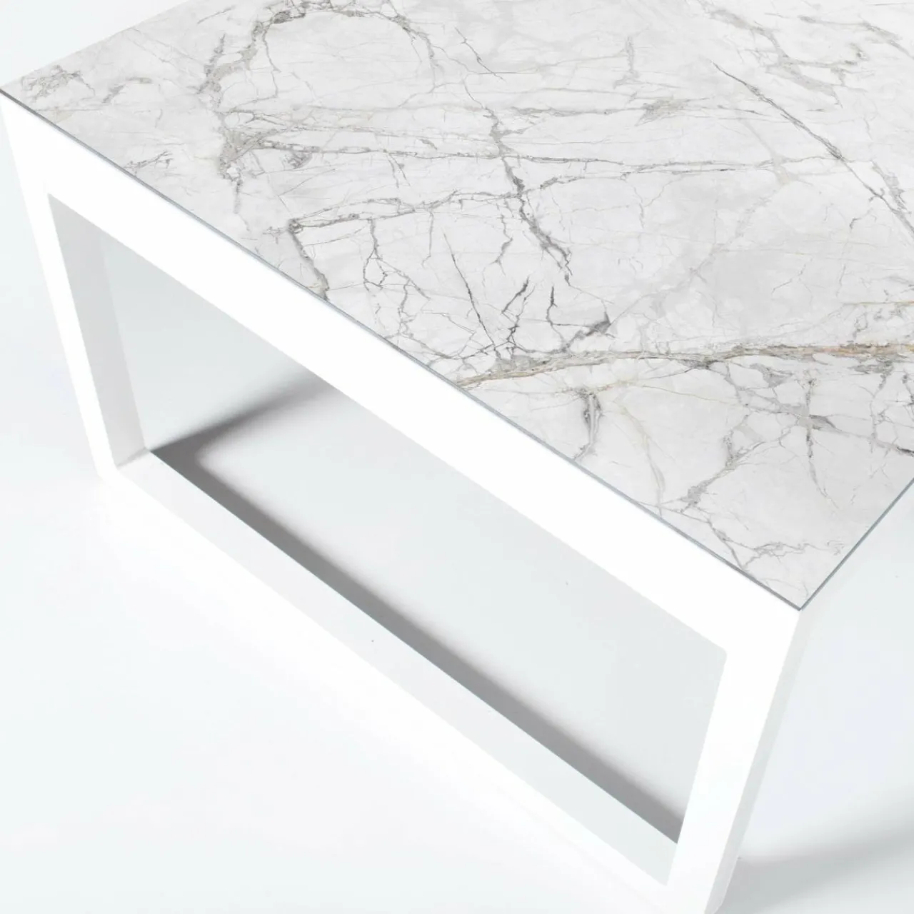 Choisissez l’élégance en installant sur votre terrasse la table de jardin Kore 12 places au design contemporain. Sa structure en aluminium solide et son plateau en céramique effet marbré blanc allient modernité et durabilité, pour un espace repas à la fois chic et fonctionnel.