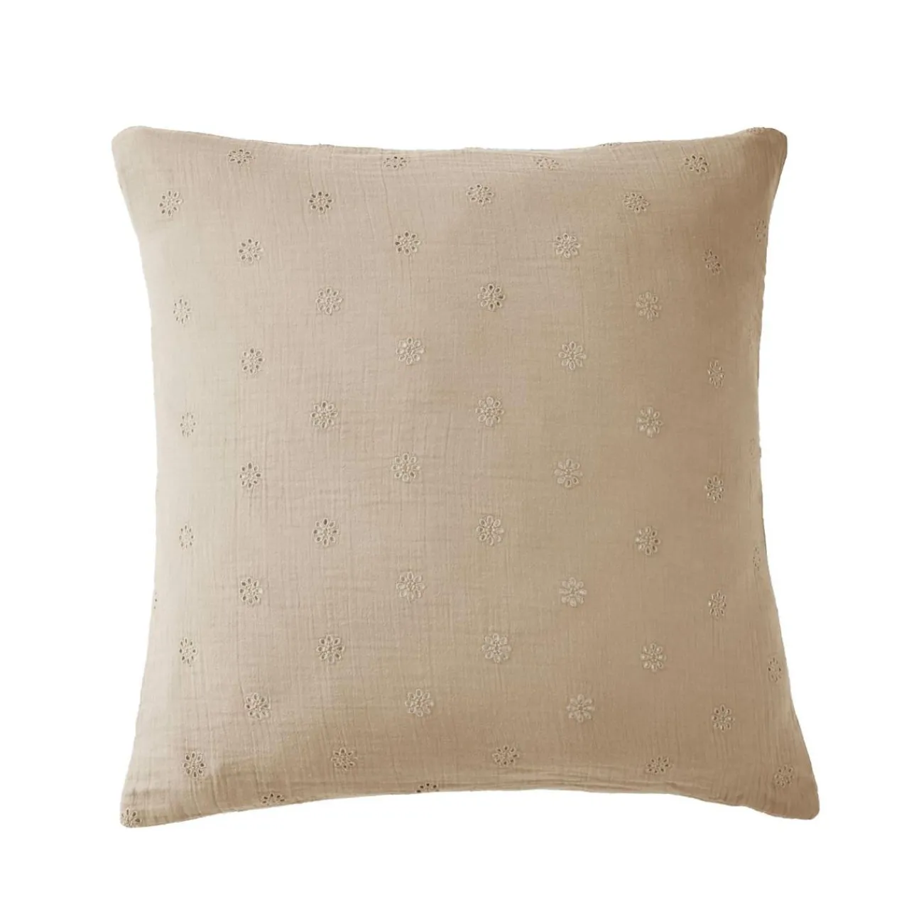 Imprimé : taie fleurie style broderie anglaise.