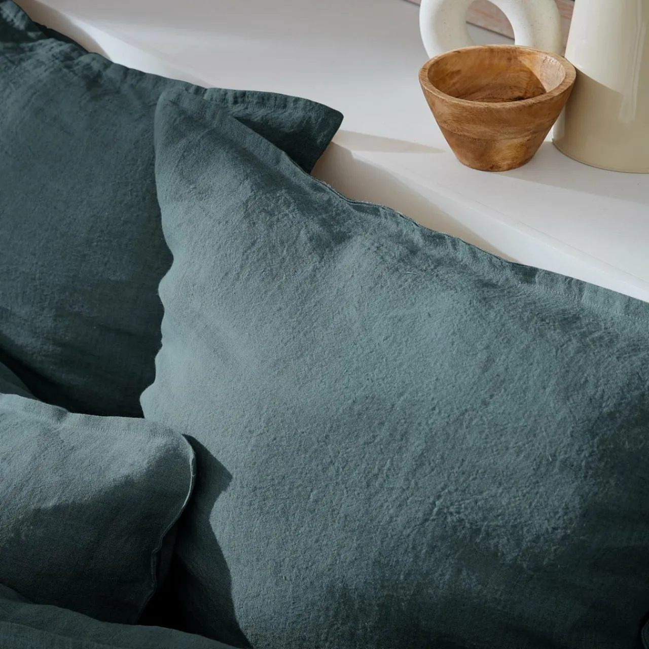 Taie D’Oreiller, Traversin|EMINZA Taie d’oreiller carrée lin lavé (60 x 60 cm) Louise Gris ardoise