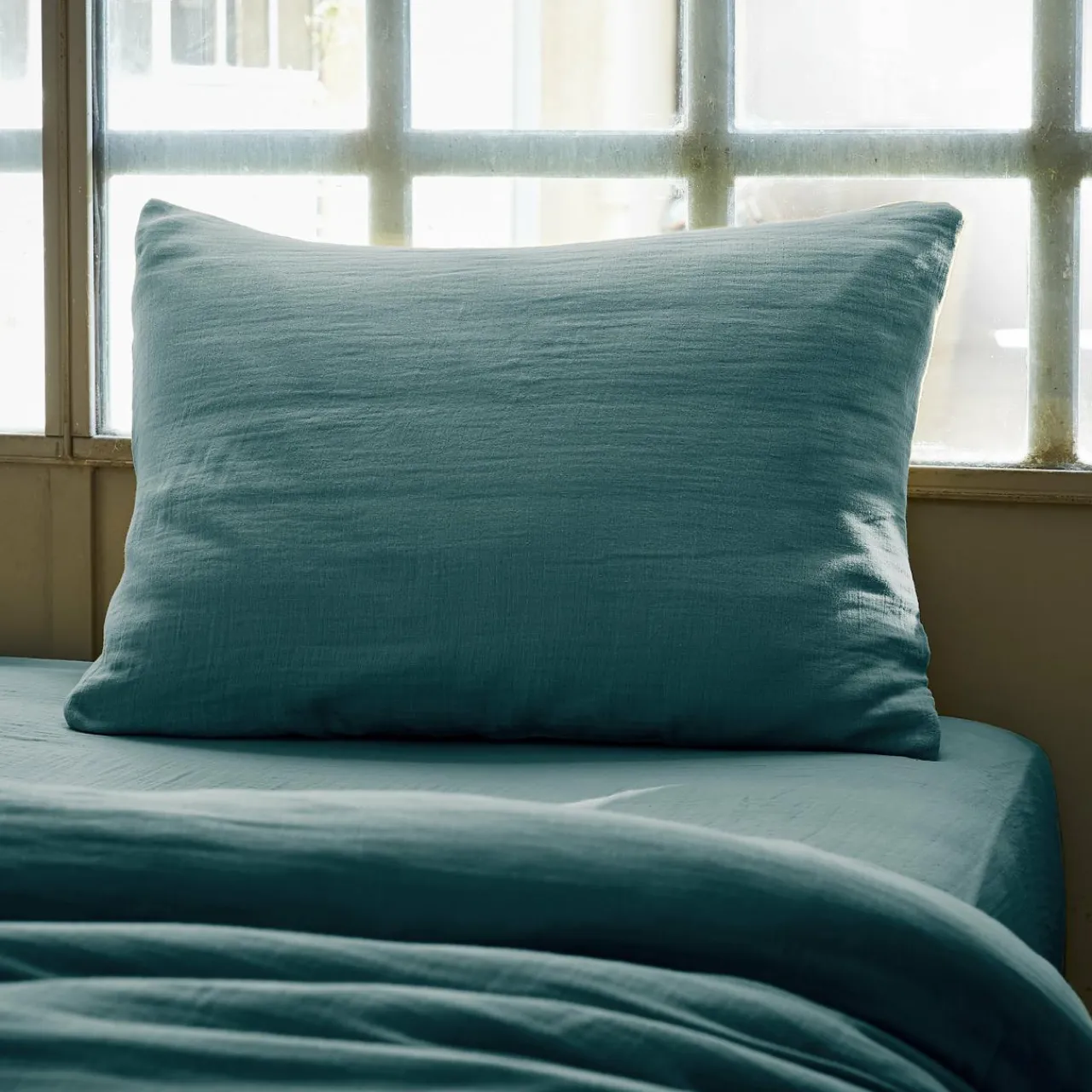 Taie D’Oreiller, Traversin|EMINZA Taie d’oreiller rectangulaire gaze de coton (50 x 80 cm) Gaïa Bleu canard