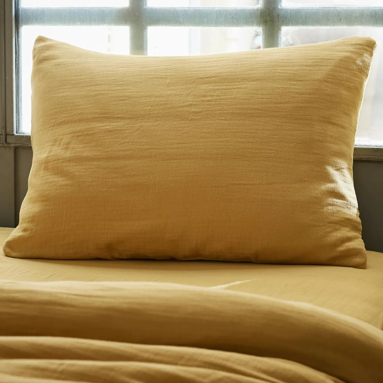 Taie D’Oreiller, Traversin|EMINZA Taie d’oreiller rectangulaire gaze de coton (50 x 80 cm) Gaïa Jaune safran