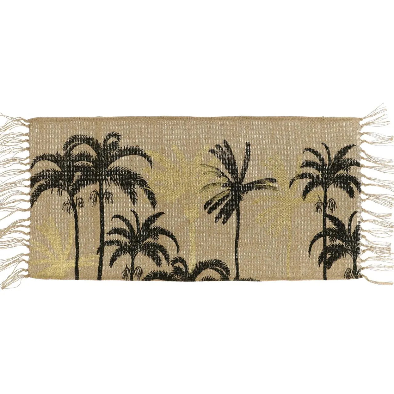 Faites voyager votre intérieur avec ce tapis en jute, imprimé d’un motif exotique.