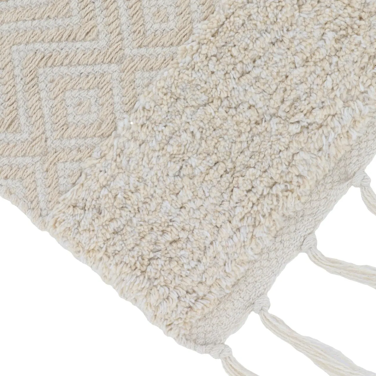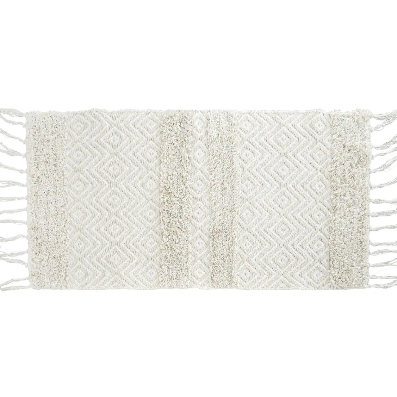 Imprimé : tapis à motif ethnique et à franges.