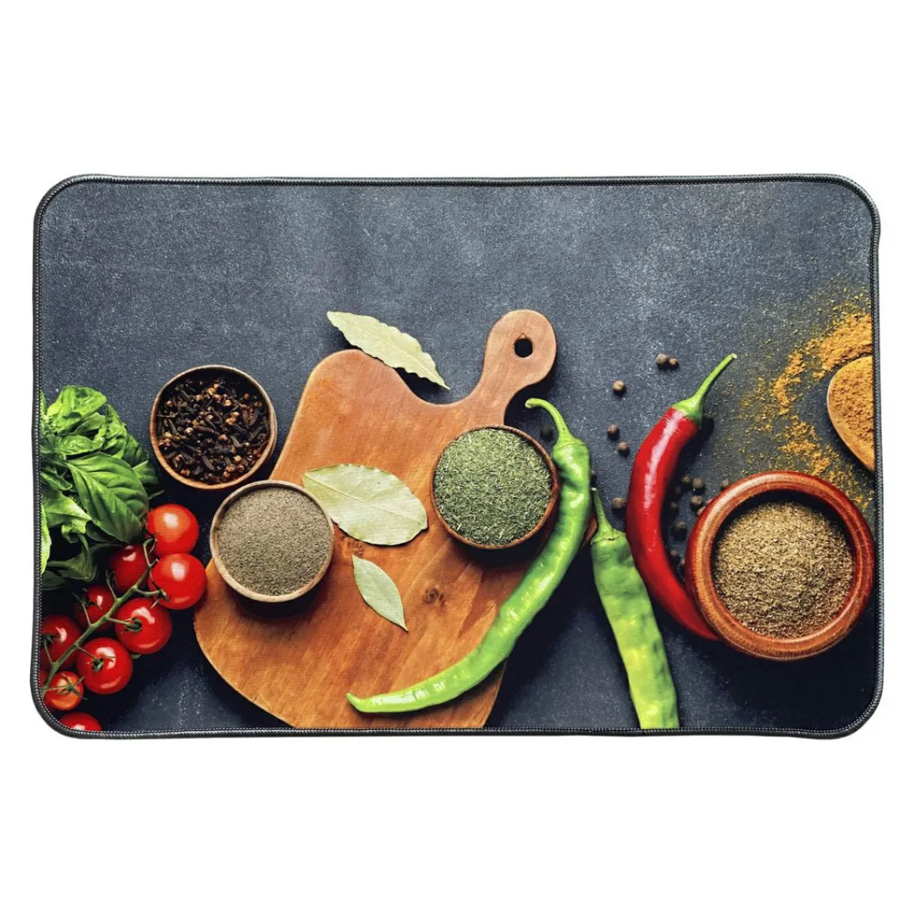 Imprimé : tapis à motifs aliments.