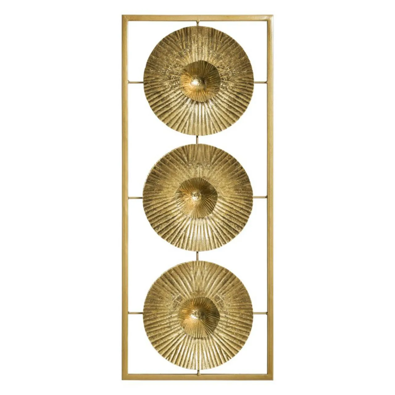 Lumineuse, cette décoration murale en métal doré embellira votre séjour.