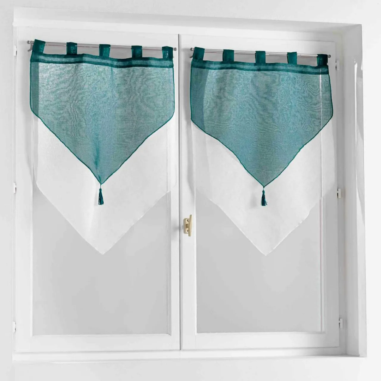 Finition : voilage à passants et pompons.