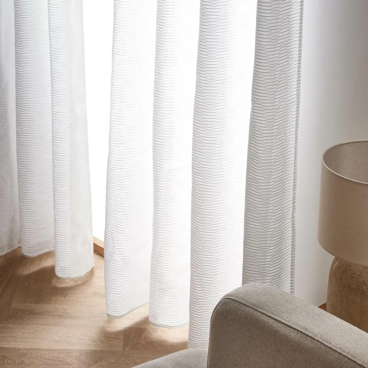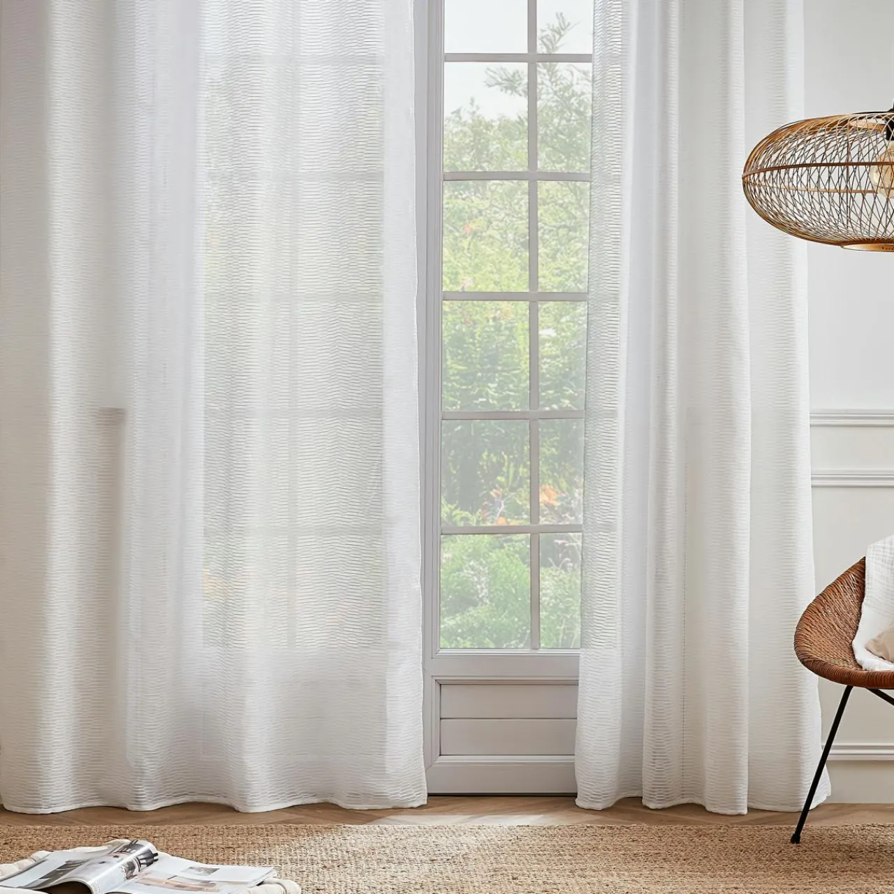 Imprimé : voilage jacquard à motif tissé.